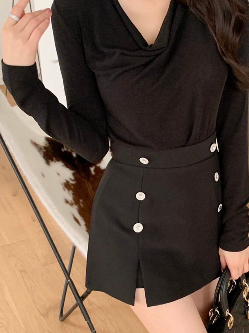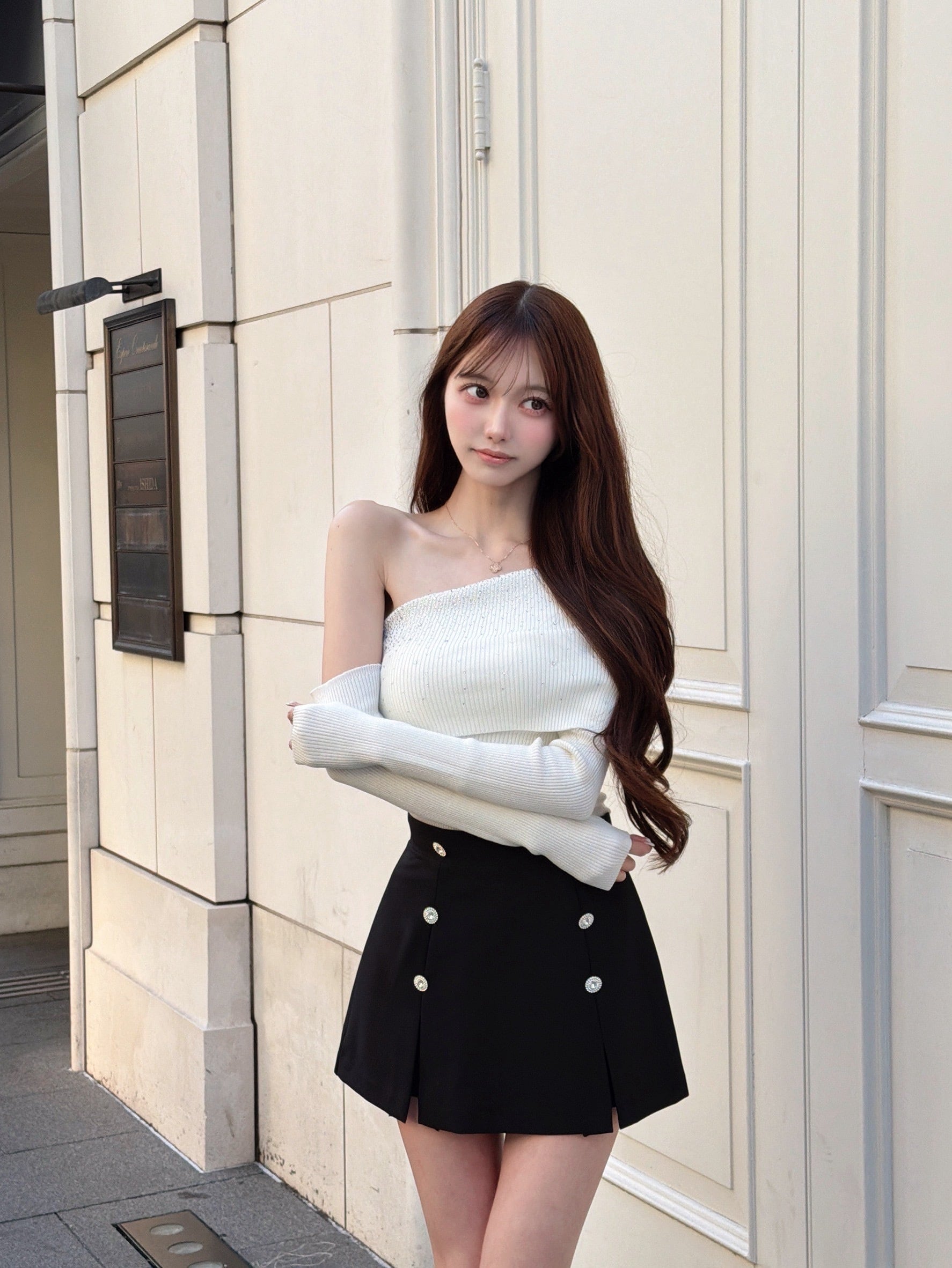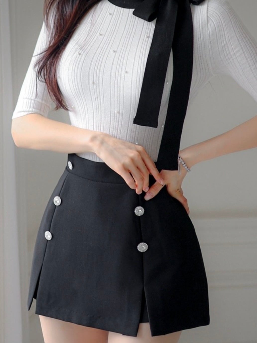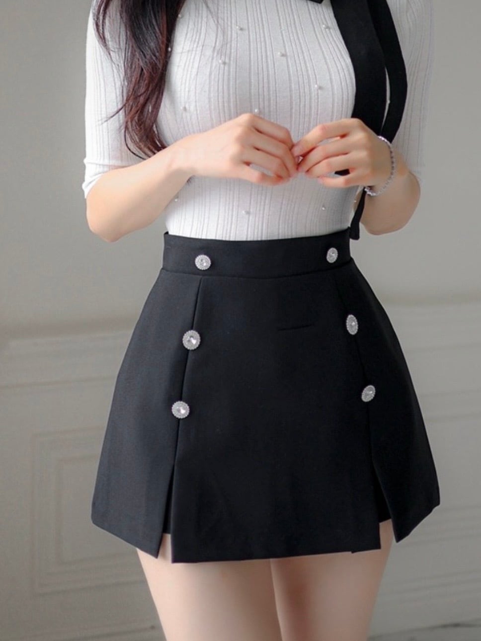 「K-Styleビジューボタンスリットスカート」は、韓国風のトレンドをお楽しみいただける魅力的なアイテムです!ビジューがさりげなく輝き、女性らしさと華やかさを演出します。デイリースタイルから特別な日のコーディネートまで、幅広く活躍できるスカートです。